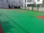 打磨球场表面的油污,涂刷底漆以增强新旧材料的附着力。